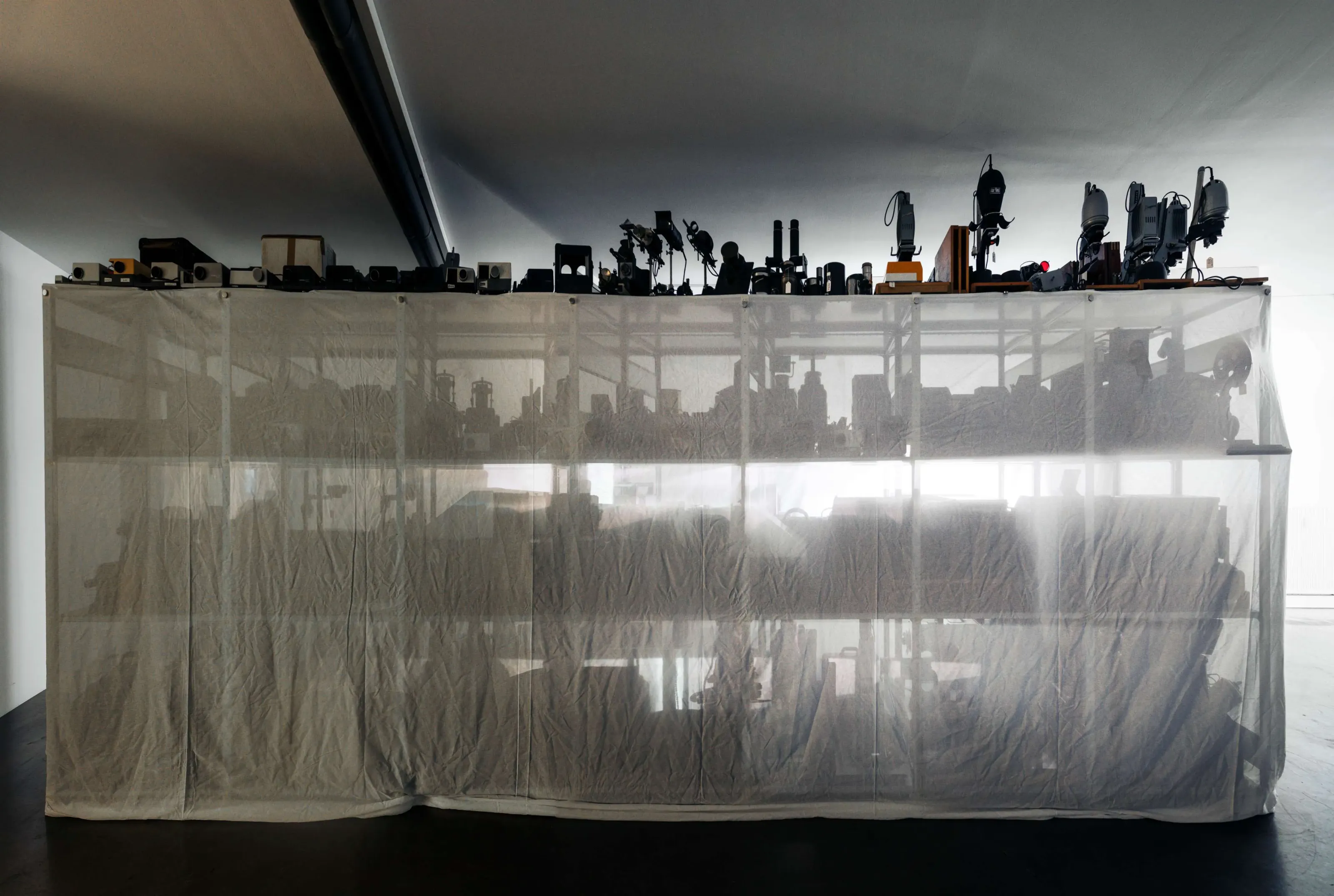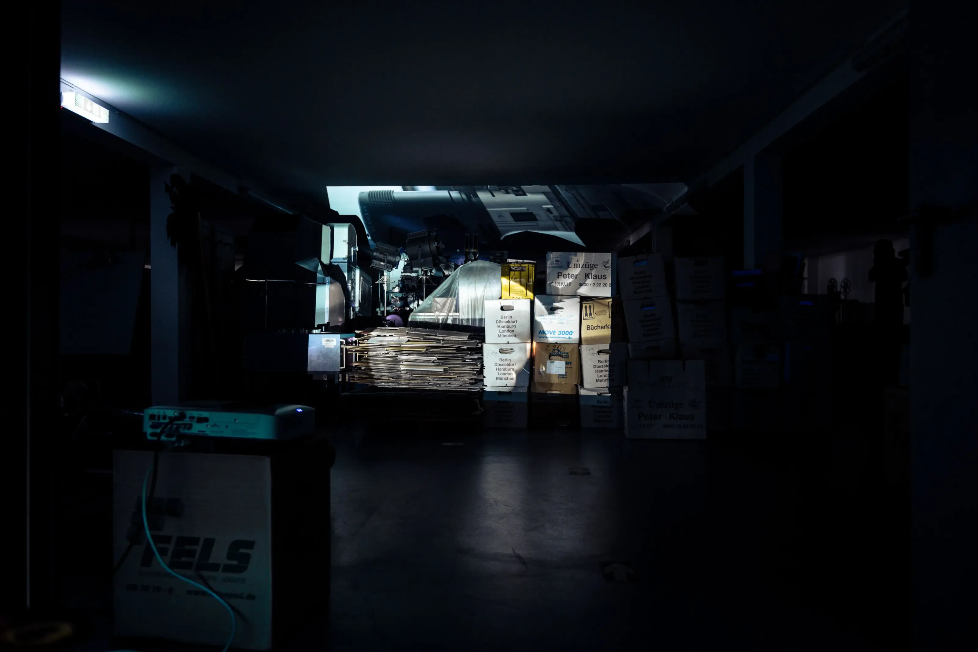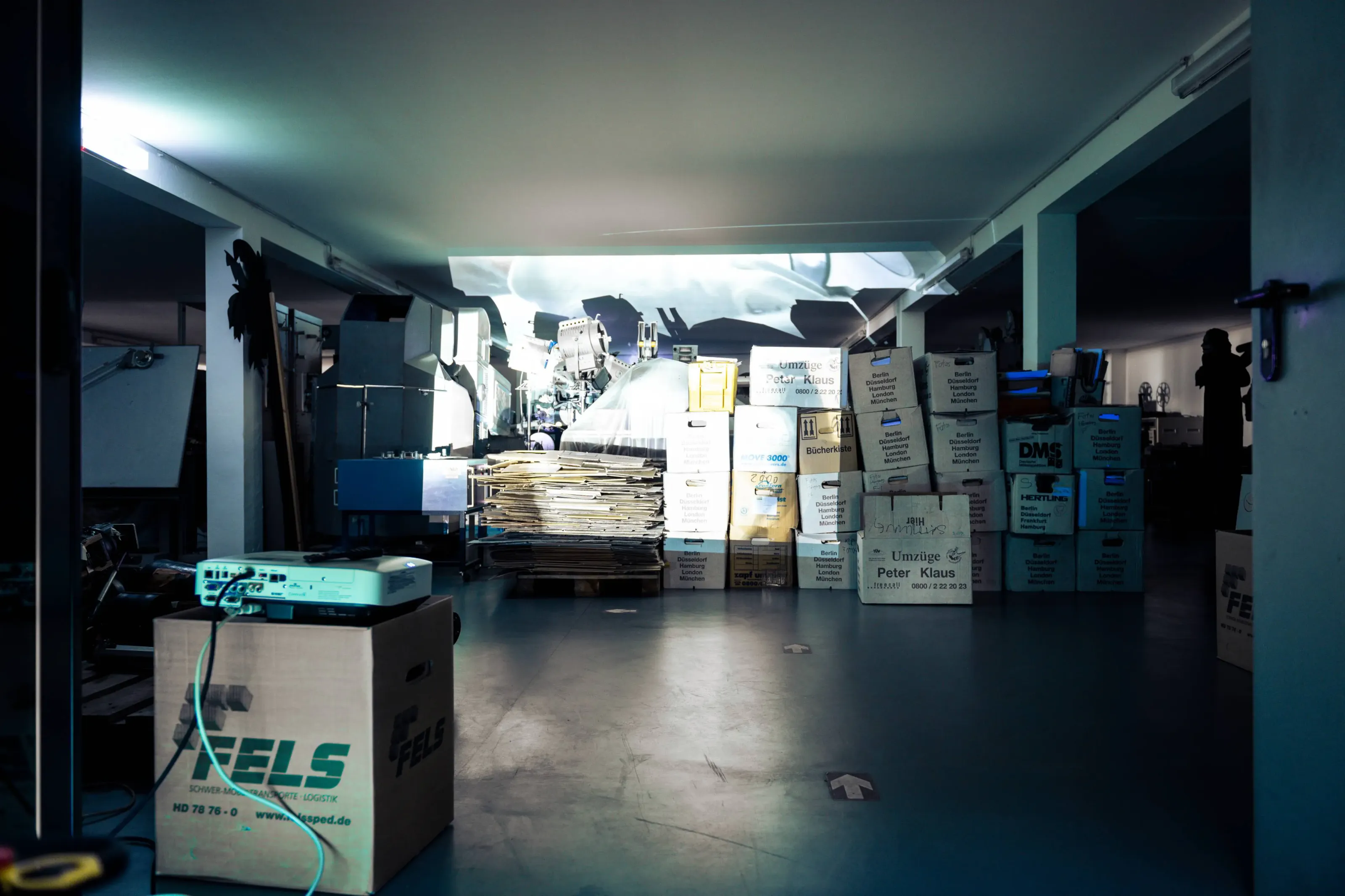 Archiv // Archiv stellt eine Beziehung her, zu den nicht gezeigten Filmen und ihren Wiedergabegeräten, die im Depot einem ‚rasenden Stillstand‘ gleich – im Zustand der scheinbaren Ruhe unterkühlt und gestapelt, in Regalen geordnet, die Welt aus den Angeln heben könnte –, wenn eben diese Apparate wieder Licht projizieren und die Diaphane bei der Durchleuchtung Schatten auf unsere Retina werfen könnten …